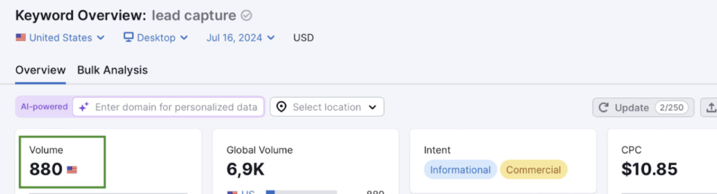 Go back to the main list of hub keywords for lead capture and repeat the same process with all the keywords that interest you. When you’re done, you can switch to the Related tab and repeat the same steps there.