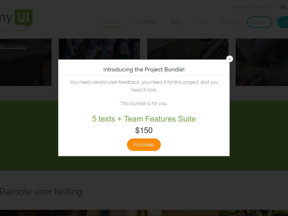 TrymyUI’s — Usability Testing Service shows unique offer pop up and highlights the most valuable info: offer, price and CTA button.
