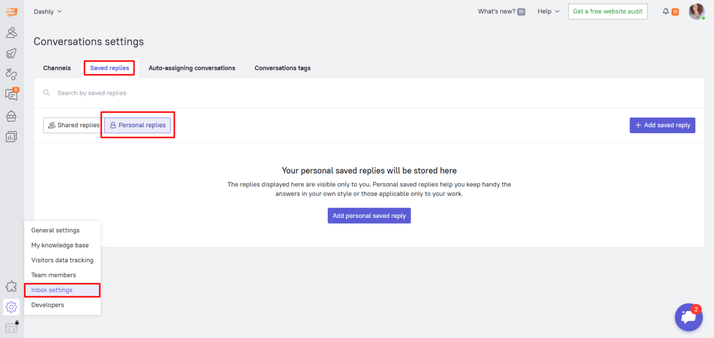After adding a reply, you can find it through the menu in the “Inbox” section: