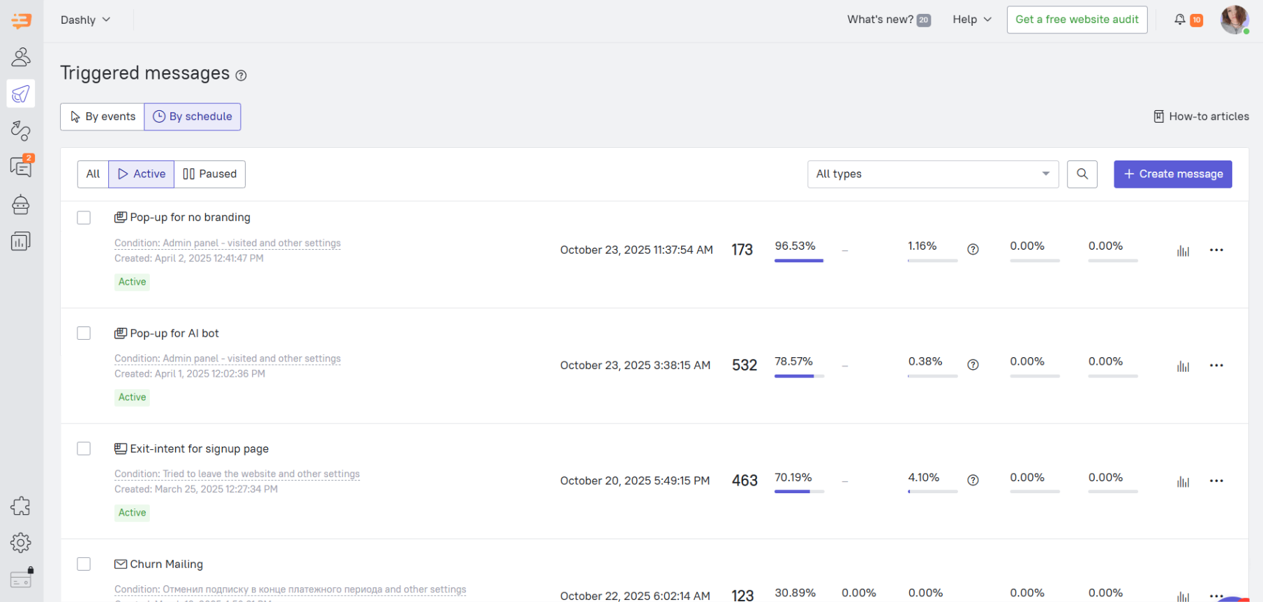 Now you can send messages not only by trigger. You can choose which segment to target and how often to send a special offer or campaign, allowing you to regularly re-engage your audience.
